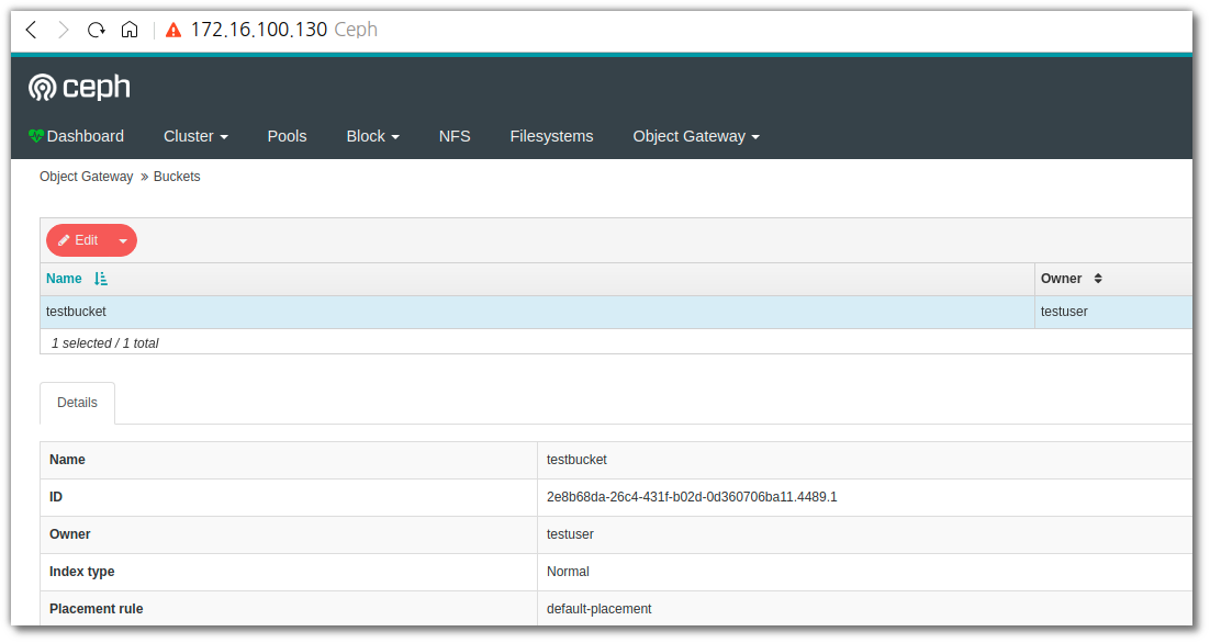 Bucket created successfully `ceph/testbucket`.