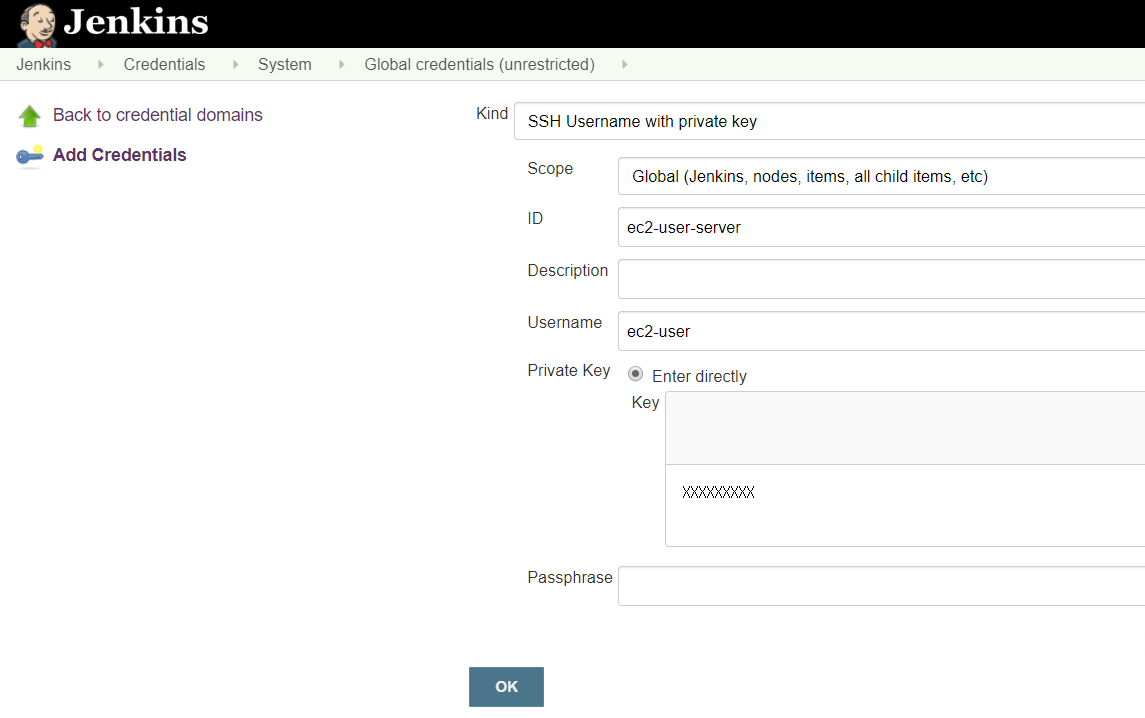withCredentials([sshUserPrivateKey(credentialsId: 'ec2-user-server', keyFileVariable: 'identity', passphraseVariable: 'passphrase', usernameVariable: 'userName')]) {