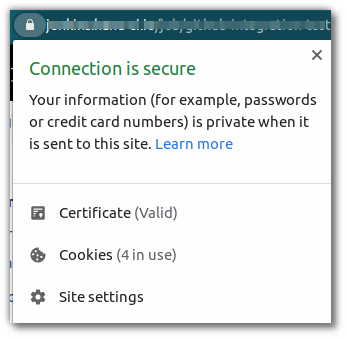생성된 ingress 주소인 abc.example.com으로 접속해보면 다음과 같이 인증서가 valid 한것으로 확인된다.