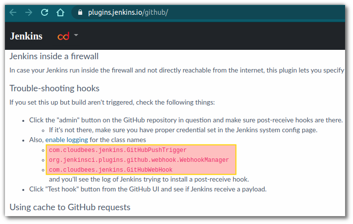 먼저 github plugin이 소개된 페이지에서 보면 다음과 같이 logging에 대한 class name을 제공하고 있다.
