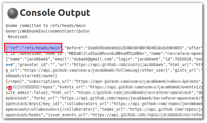 실제 github의 webhook을 발생시켜보면 아래와 같이 실제 job 실행과 함께 webhook post에 대한 데이터를 확인할 수 있다.