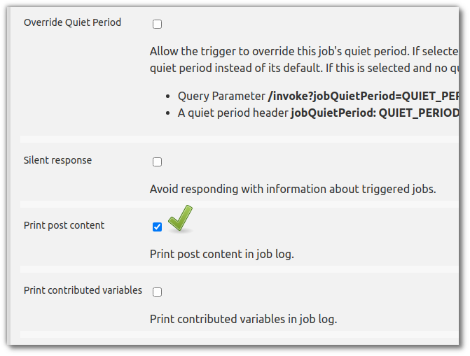 테스트 해본 결과 특정 버전에서만 동작하는 경우가 발생되었다. 실제 테스트중인 현시점 최신버전(Jenkins 2.249.1)에서는 호출은 되나 job trigger가 되지 않았다. 해당 부분은 디버깅이 필요하여 추가적인 분석을 해볼 예정이다. 하여 버전 정보를 확인하고 테스트를 해볼거나 아래의 Generic Webhook plugin을 사용할 것을 추천한다.